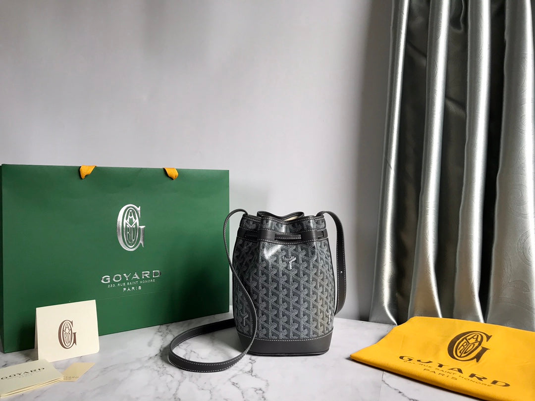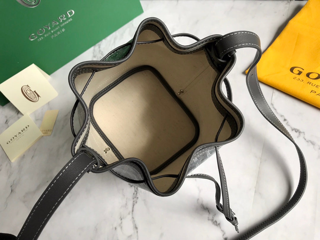 PETIT FLOT BUCKET BAG 22 IN GRAY GOYARDINE CANVAS AND LAMBSKIN TRIM