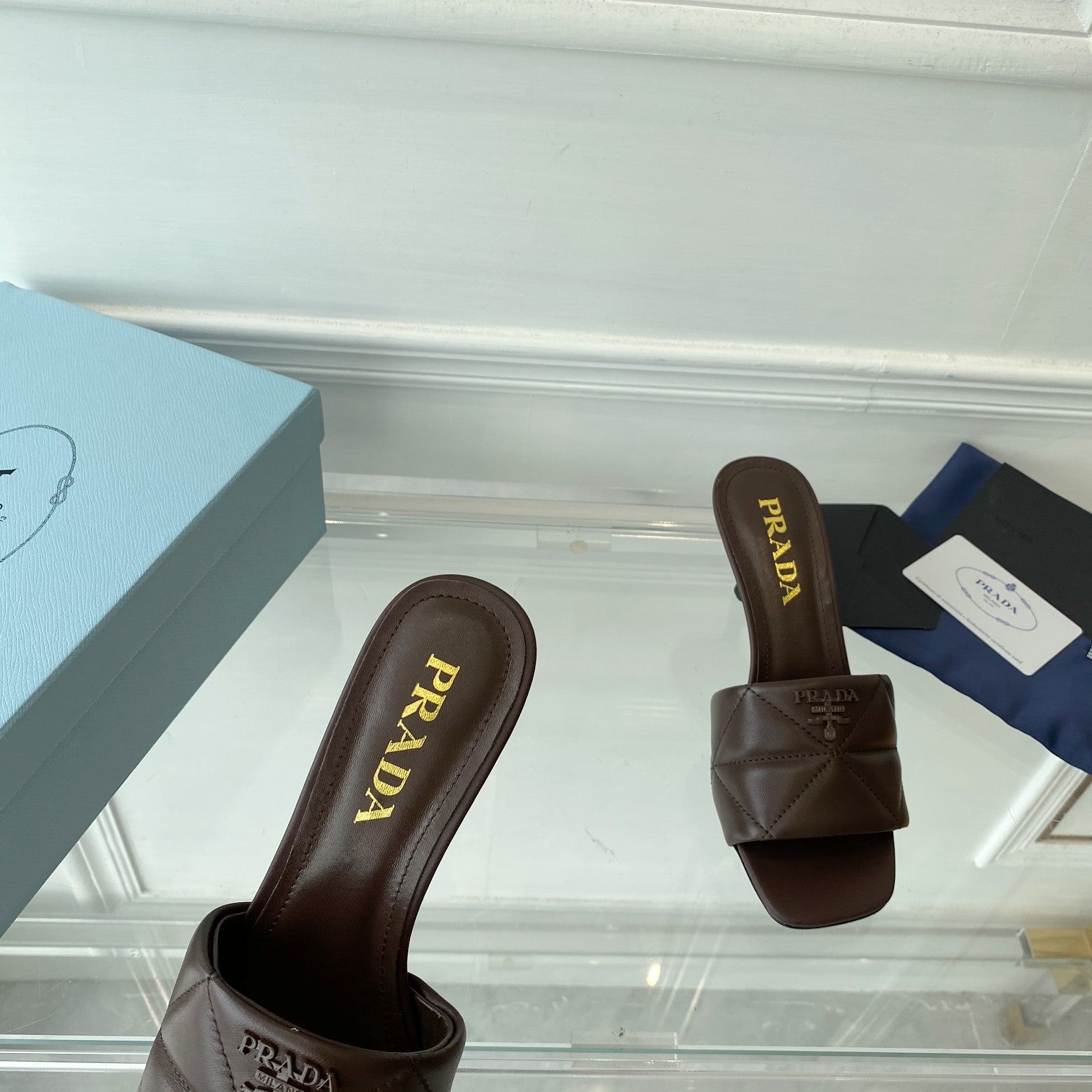 PRA QUILTED HIGH HEELS SANDALS 65 CHOCOLATE LAMBSKIN