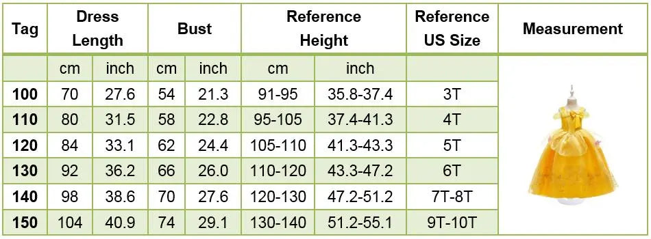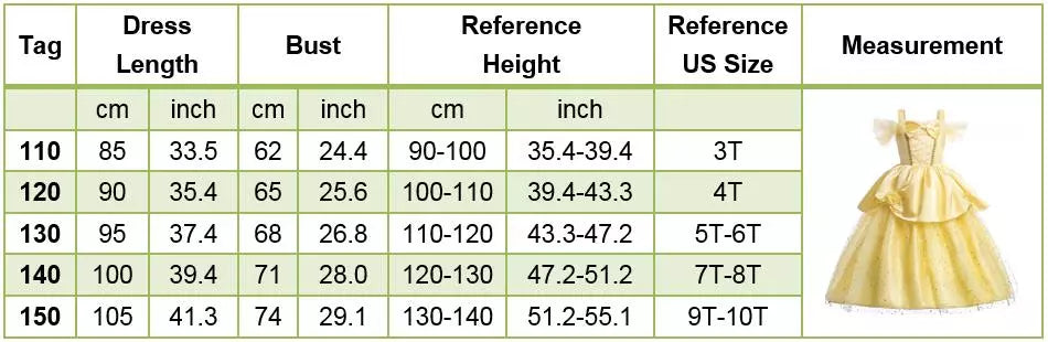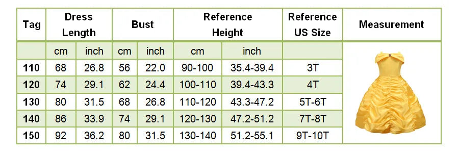 Name: Kids Princess Dresses Girls Yellow Party Costume Children Christmas Birthday Flower Clothes Beauty and the Beast Fancy Disguise