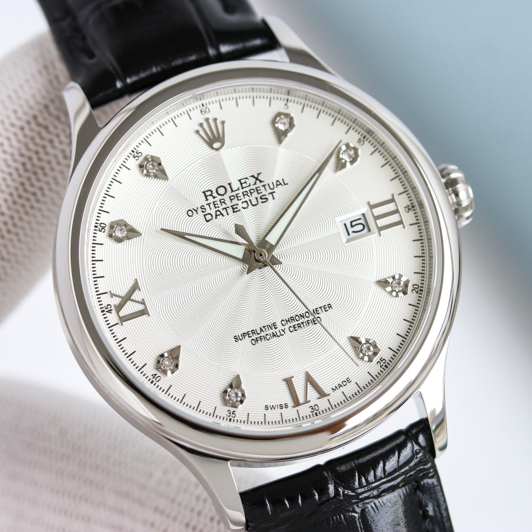 Rolex Datejust 40mm Silver Pink Gold Leather