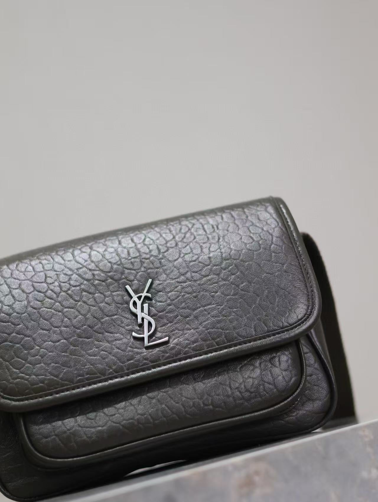 Saint Laurent Niki Logo Plaque Messenger Bag Dark Green Calfskin