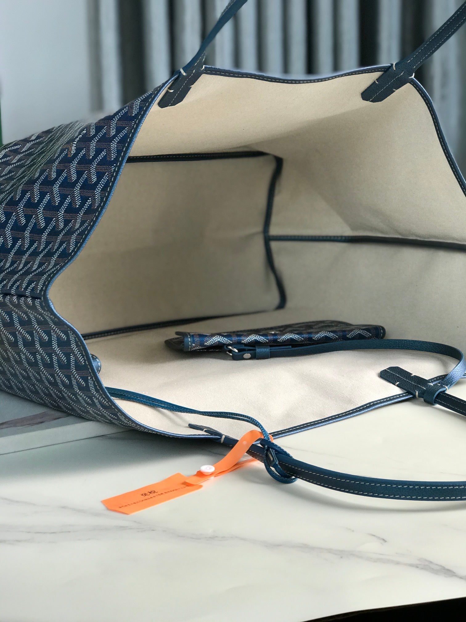 - Material: Goyardine canvas & chevroches calfskin
