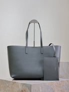 SHOPPING TOTE BAG 38 IN GRAY CALFSKIN