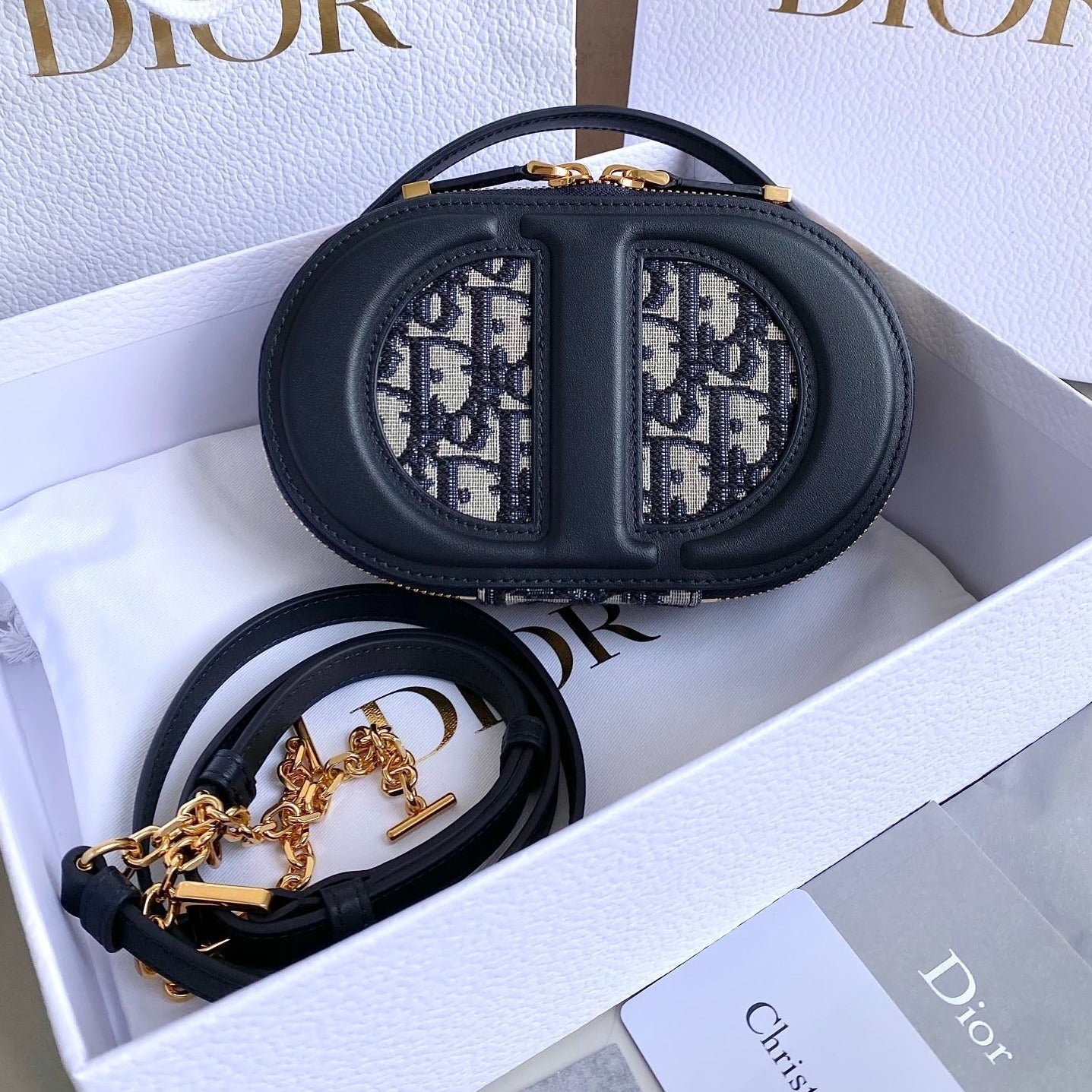 SIGNATURE 18 OVAL BAG IN BLUE OBLIQUE JACQUARD