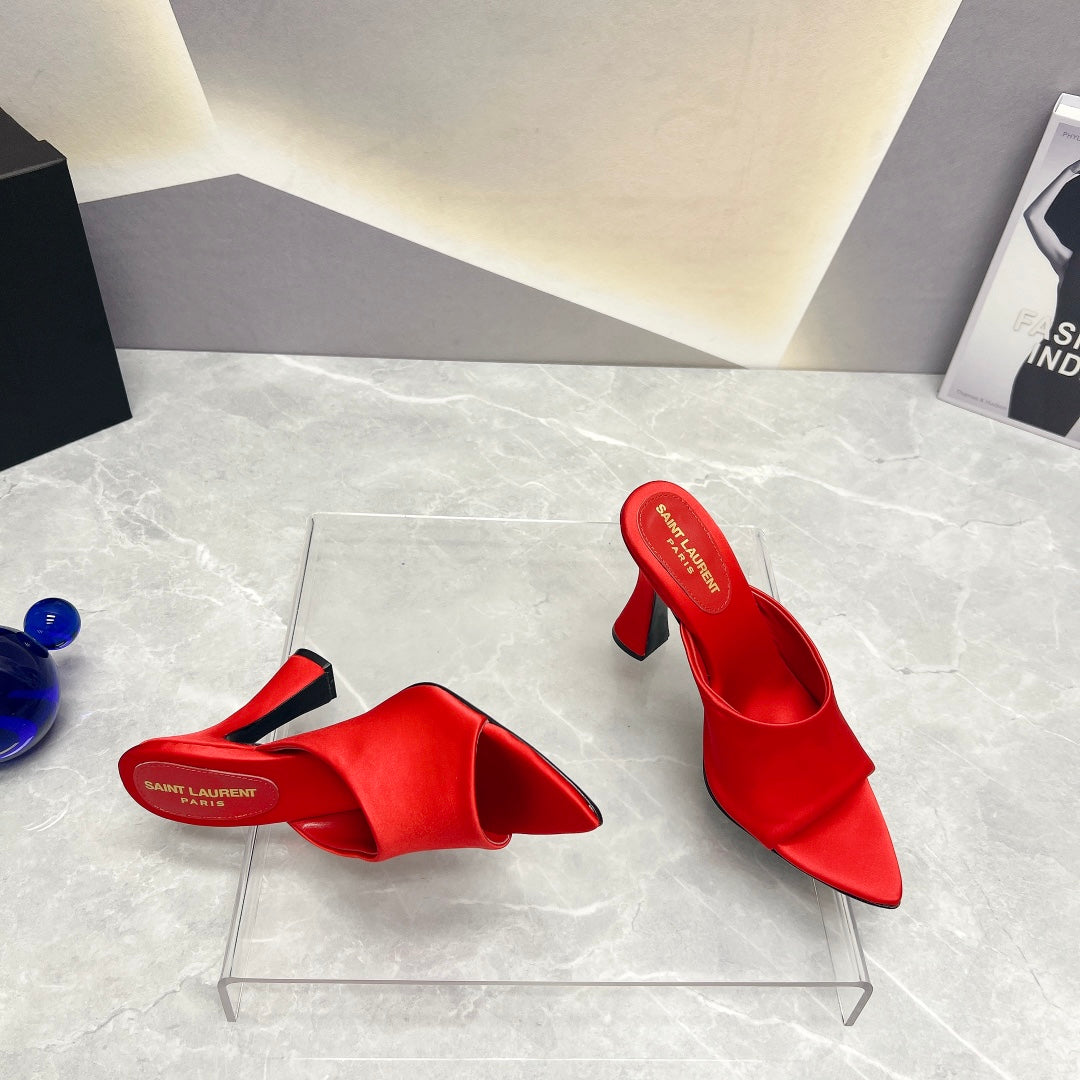 SL GOLDIE MULES RED SATIN