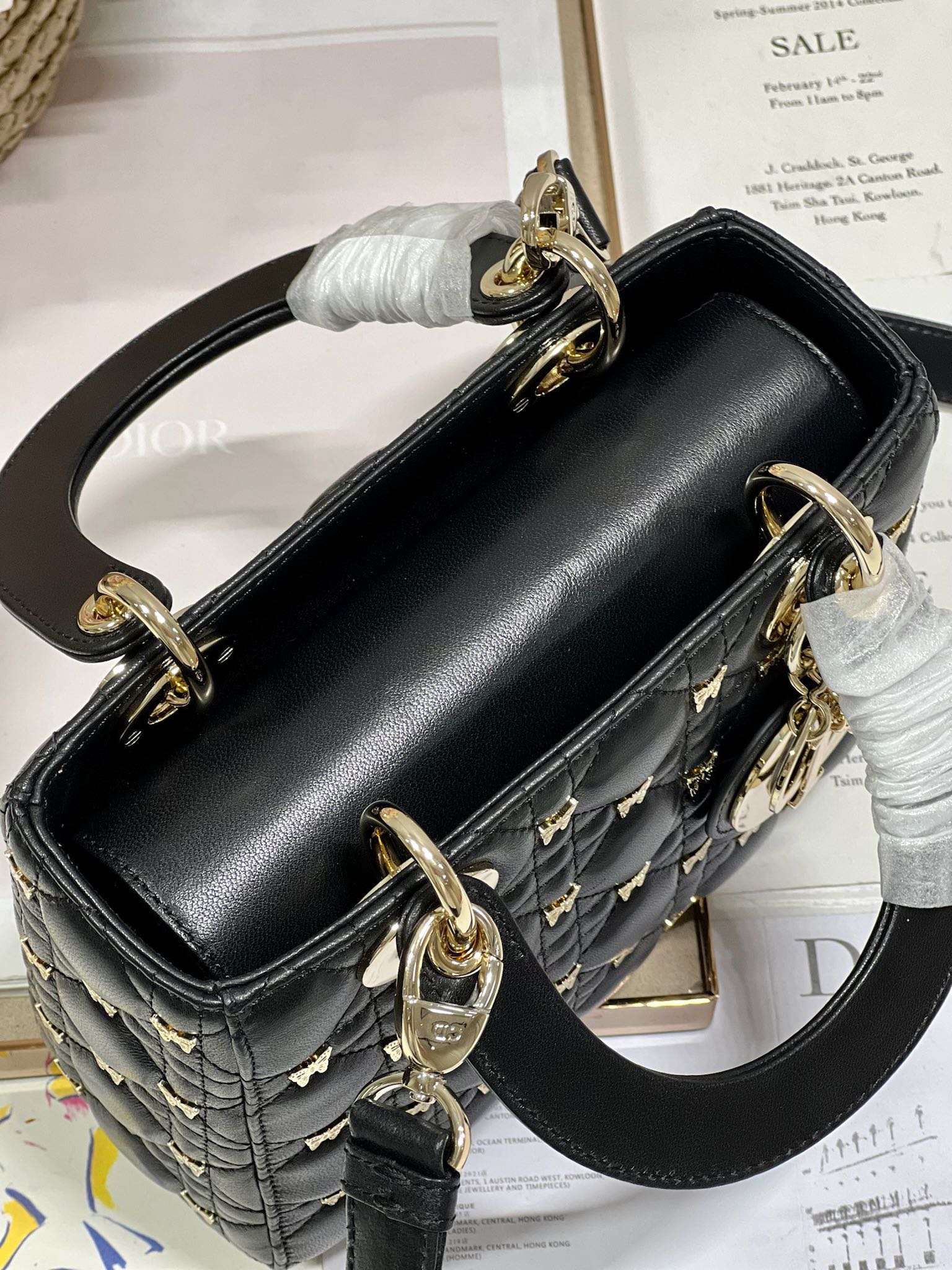 SMALL LADY 20 BUTTERFLY STUD BLACK LAMBSKIN