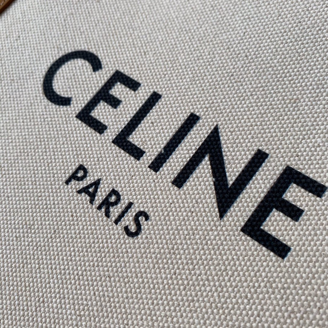 small vertical cabas 28cm beige canvas tan calfskin