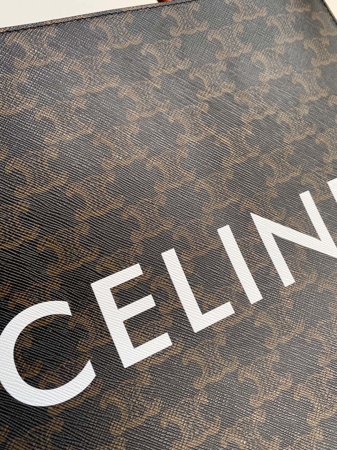 small vertical cabas 28cm black triomphe canvas tan calfskin