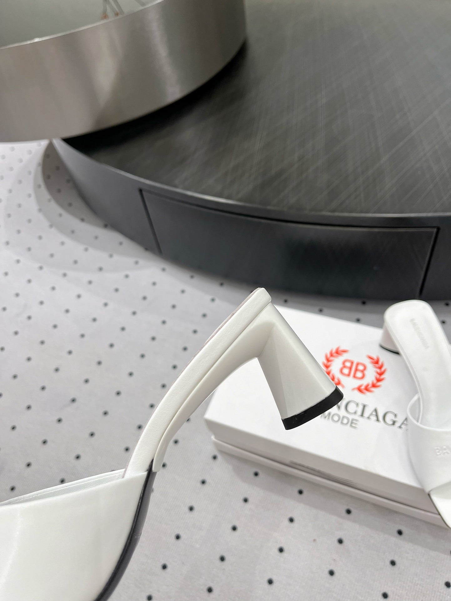 SQUARE-TOE MEDIUM HEEL MULES IN WHITE CALFSKIN LOGO EMBOSSED