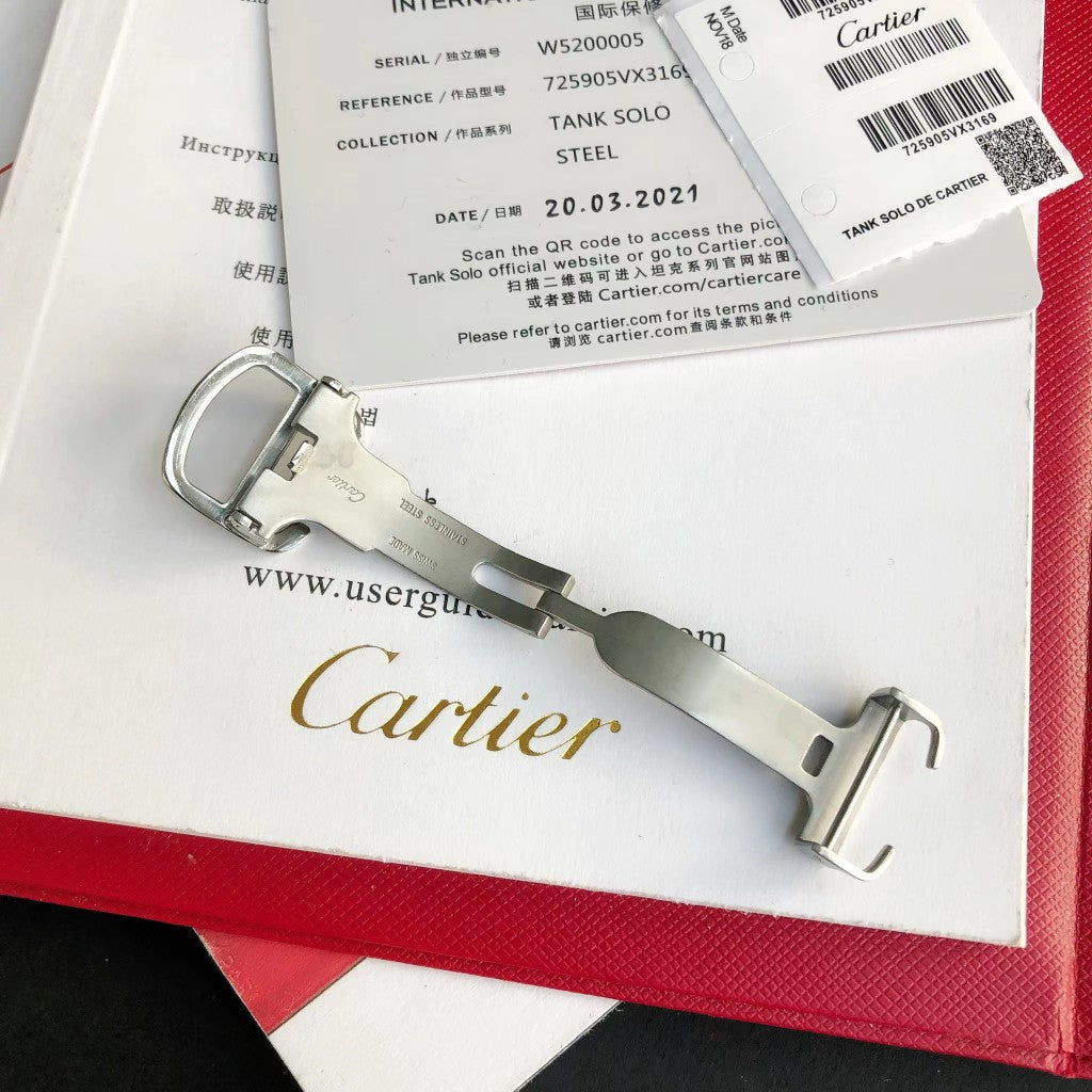 TANK SOLO SILVER CASE BLACK CALFSKIN LEATHER