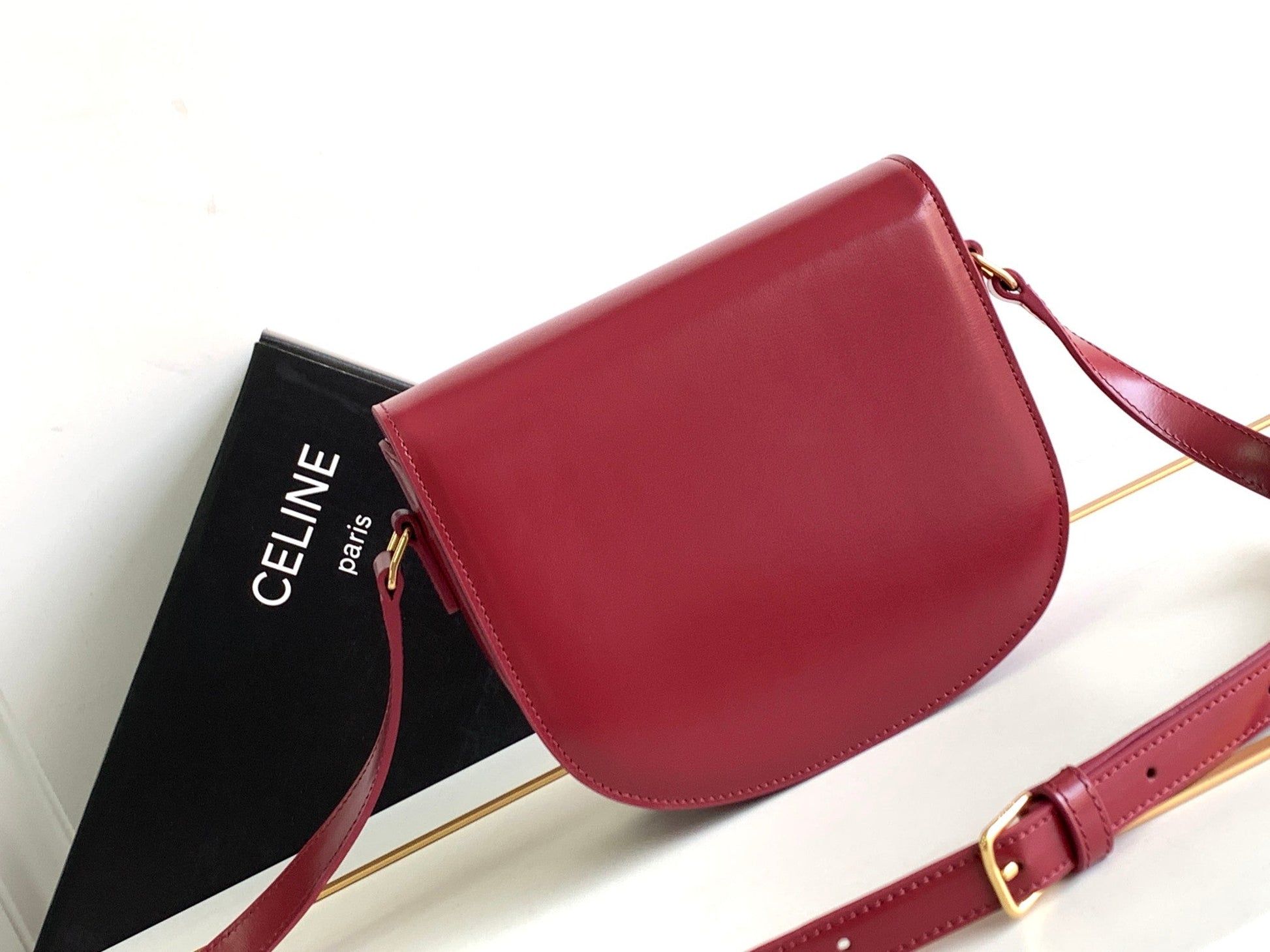 - Color: Dark red, Gold hardware