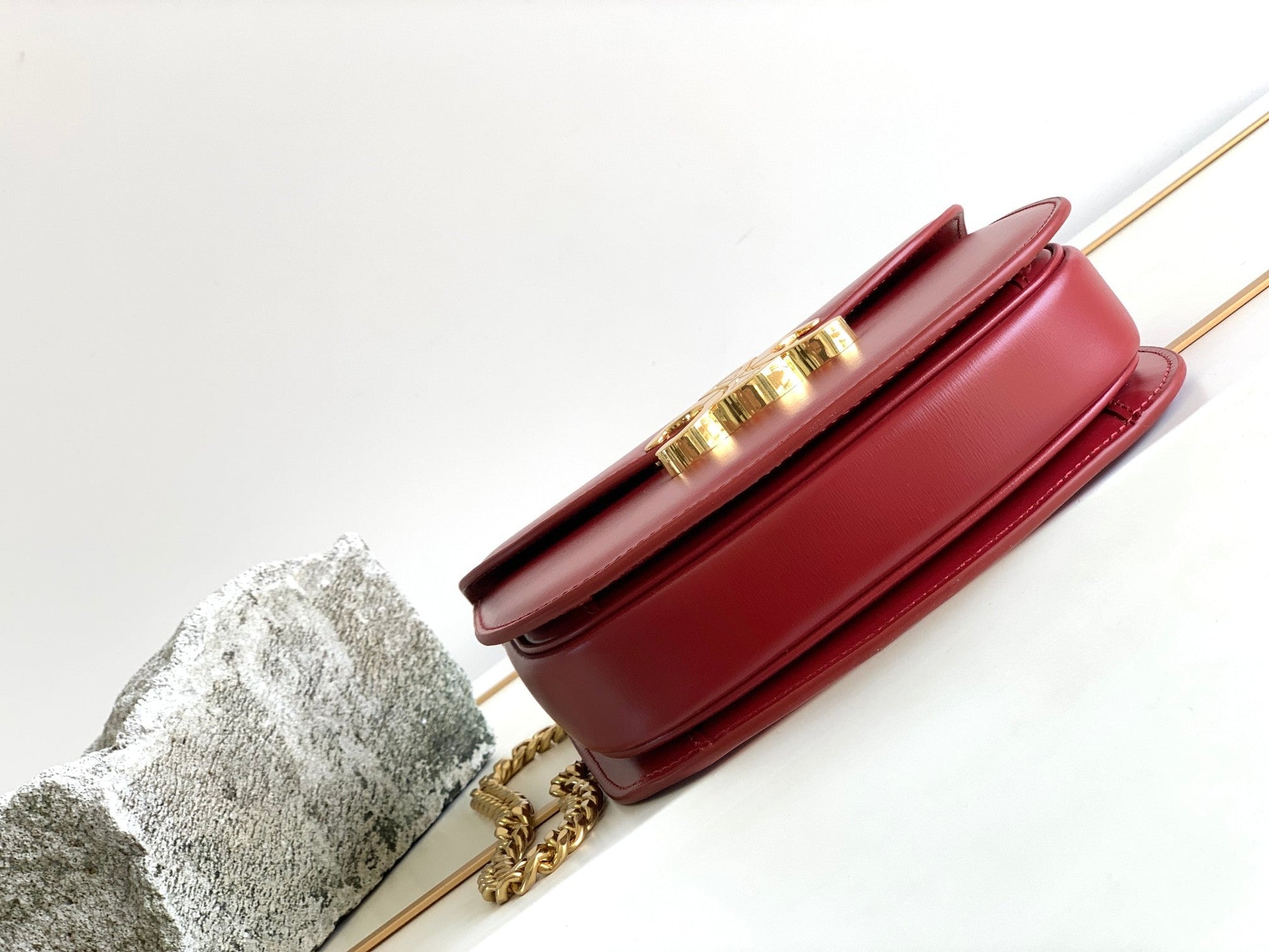 teen besace triomphe 18.5 dark red calfskin with chain