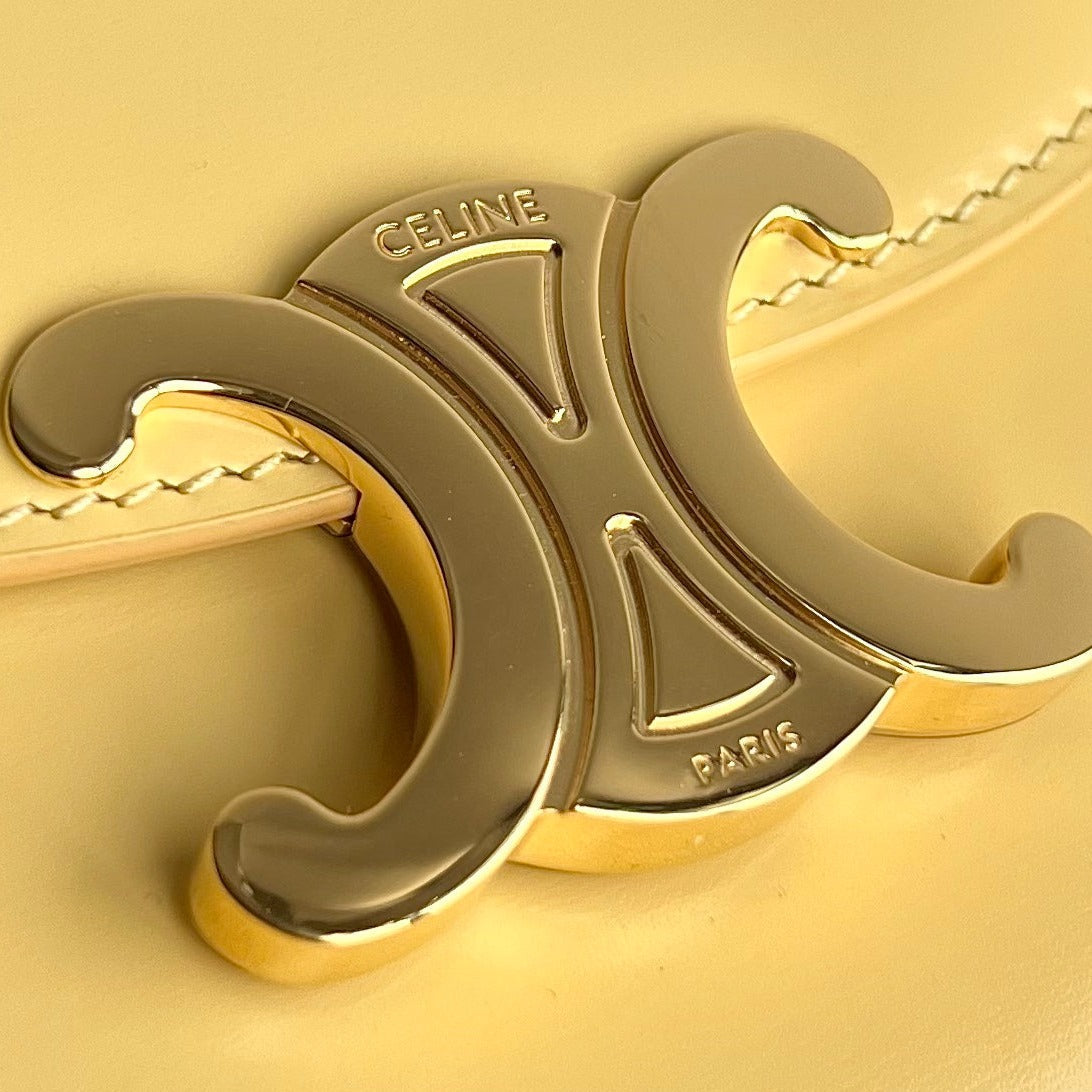 TRIOMPHE SHINY CALFSKIN HANDBAG 18 YELLOW PASTEL