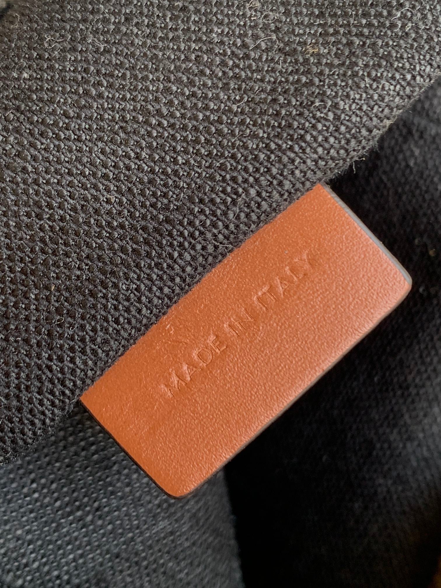 Material: fabric lining, hand carry, drawstring closure, leather handle length 13 cm