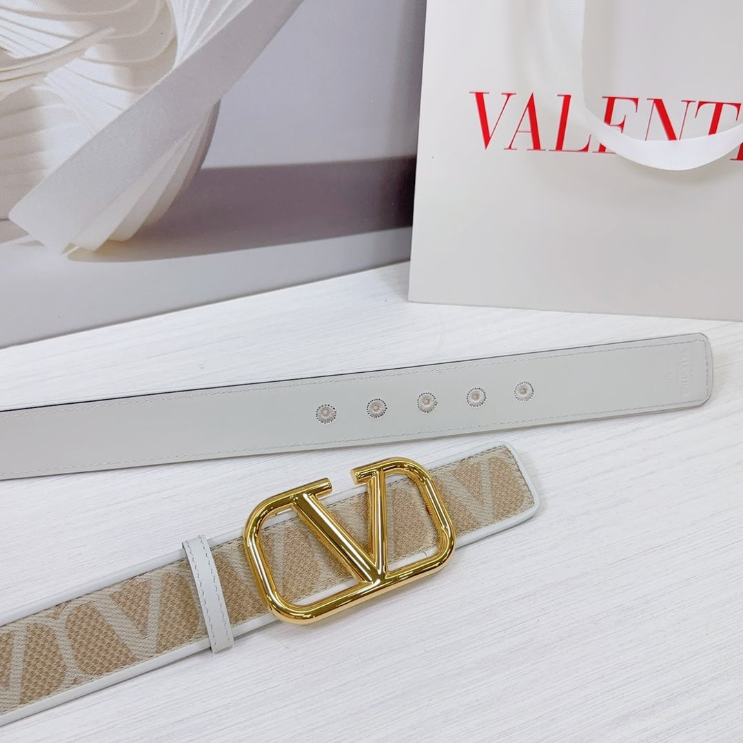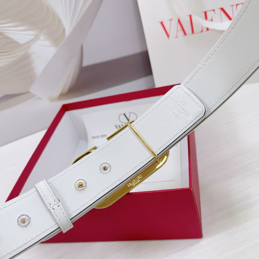Valenti Toilde Iconographe Belt 40mm White Beige Calfskin Shiny Gold Buckle