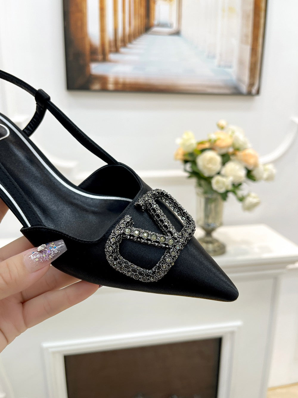 Valentino 25 Vlogo Signature Slingback Pumps Black Silk 239505