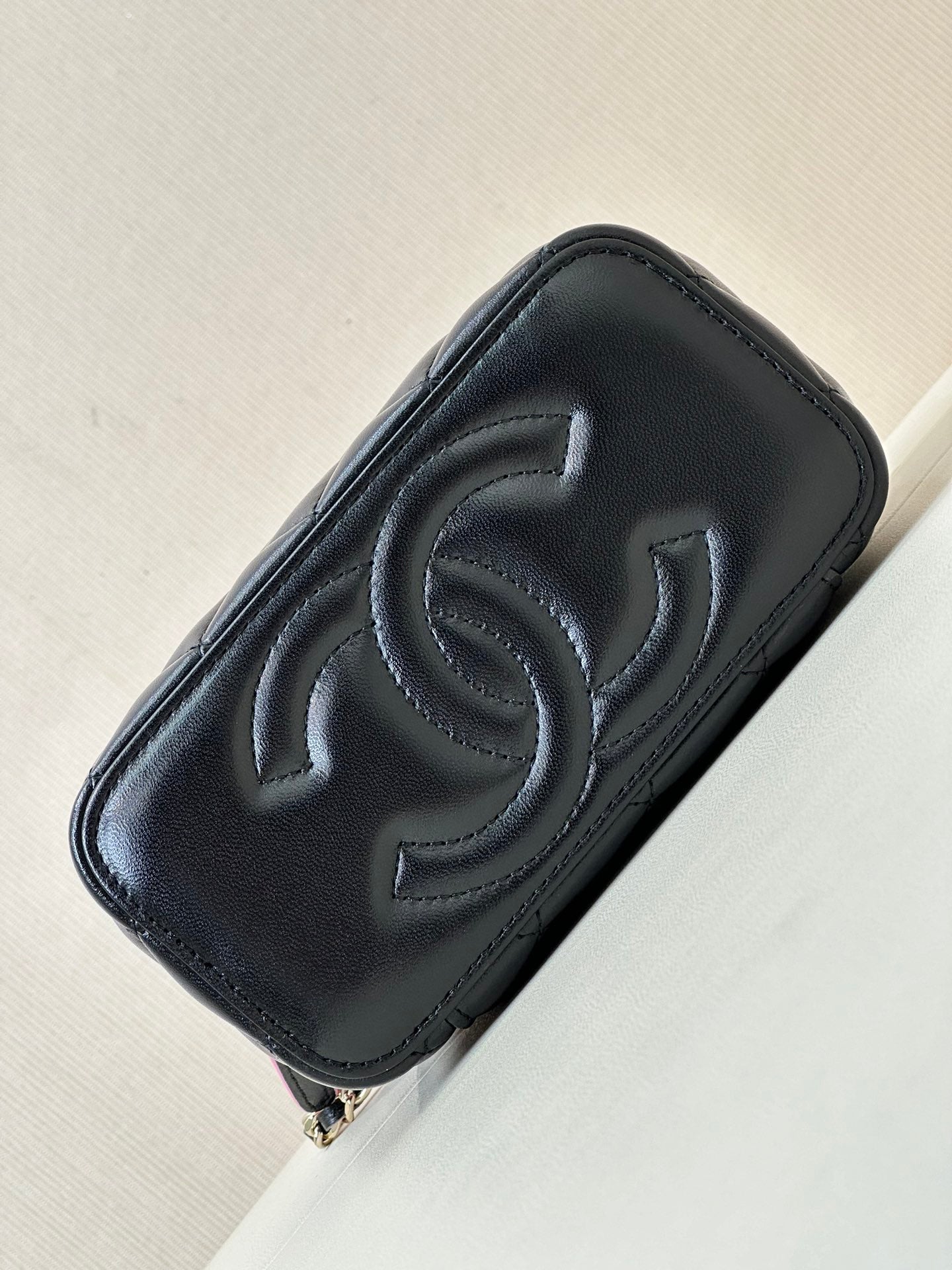 vanity shoulder bag top handle 17cm black pink lambskin