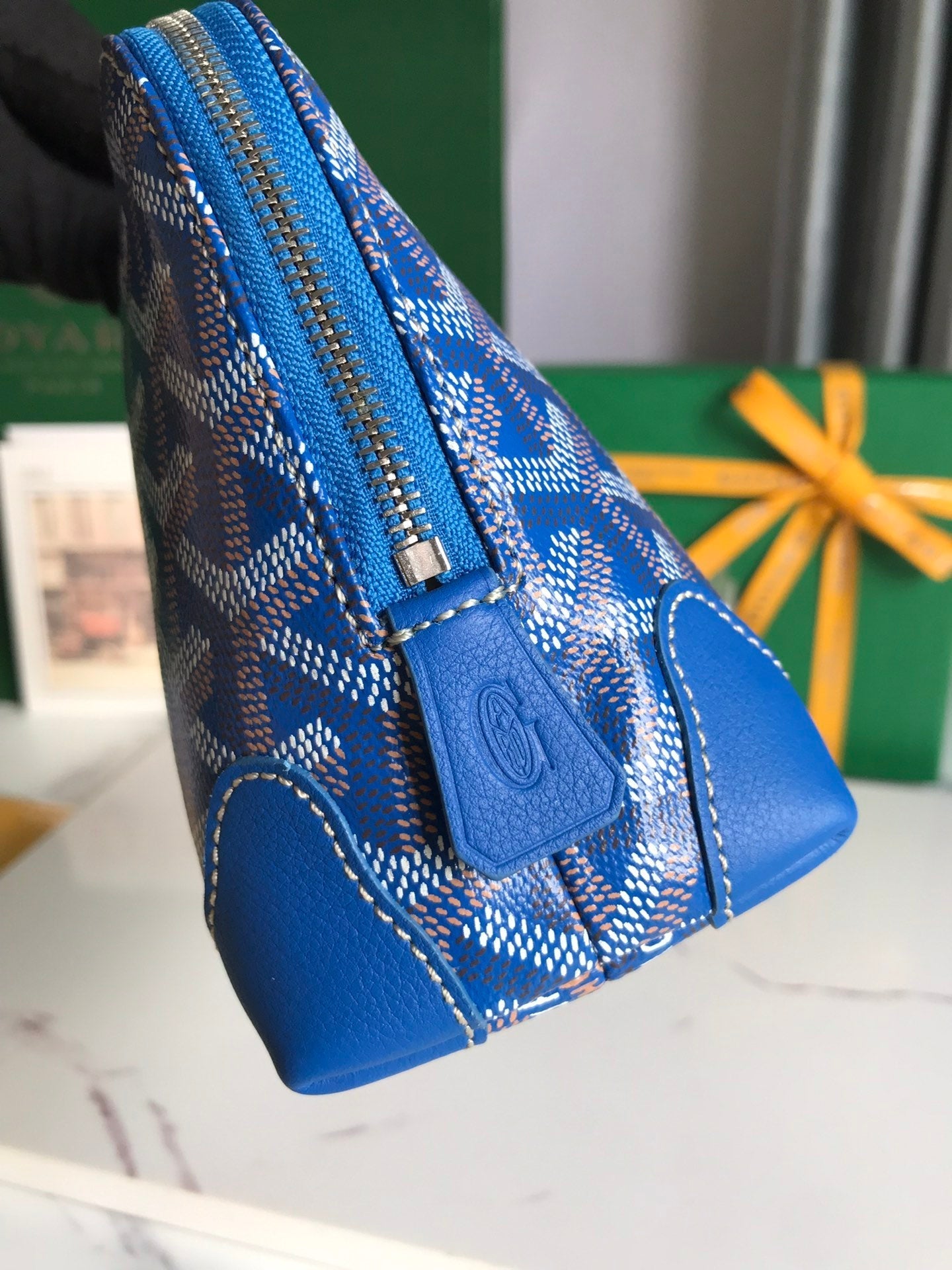 VENDÔME COSMETIC POUCH 17 IN SAPPHIRE BLUE GOYARDINE CANVAS AND CALFSKIN TRIM