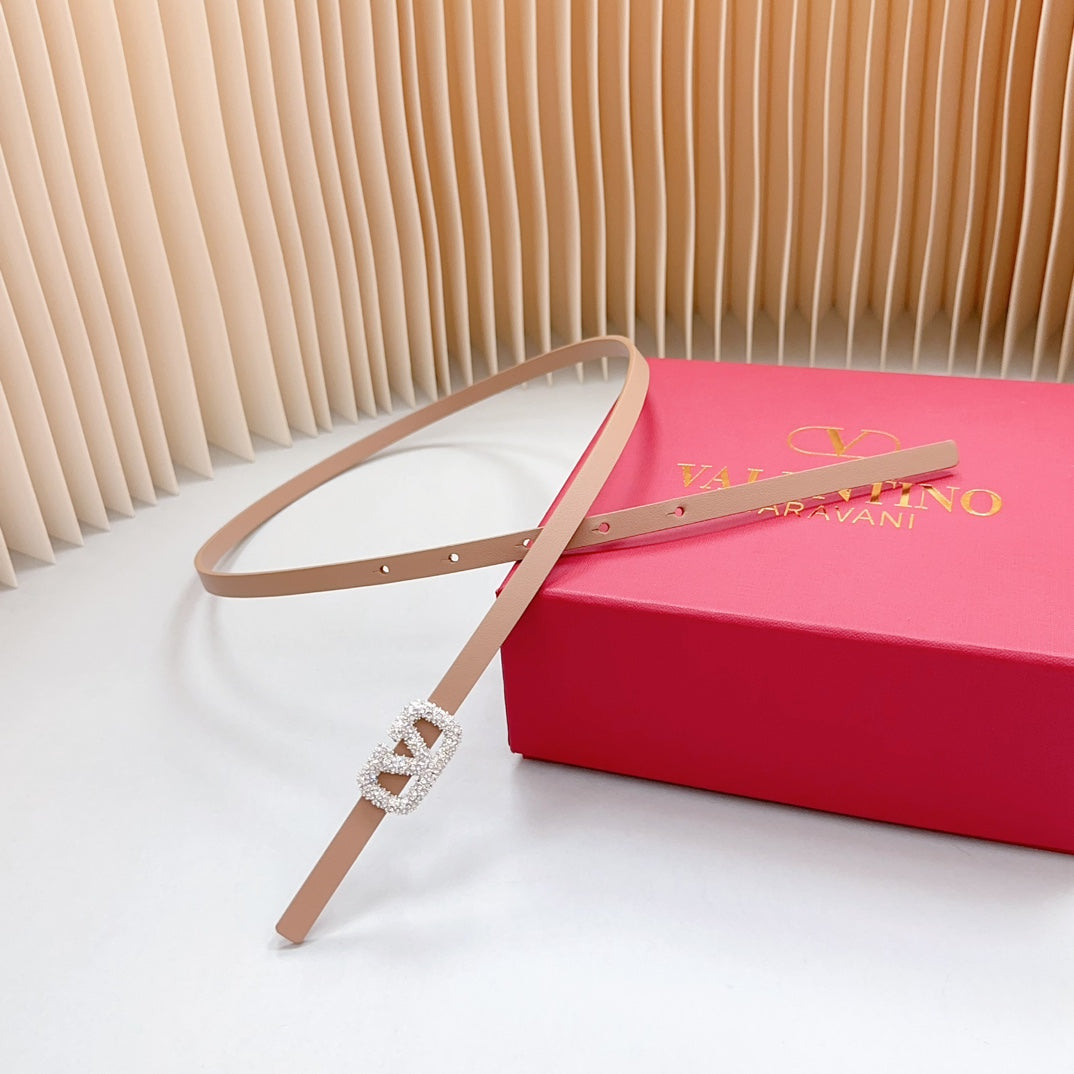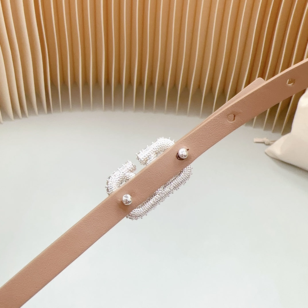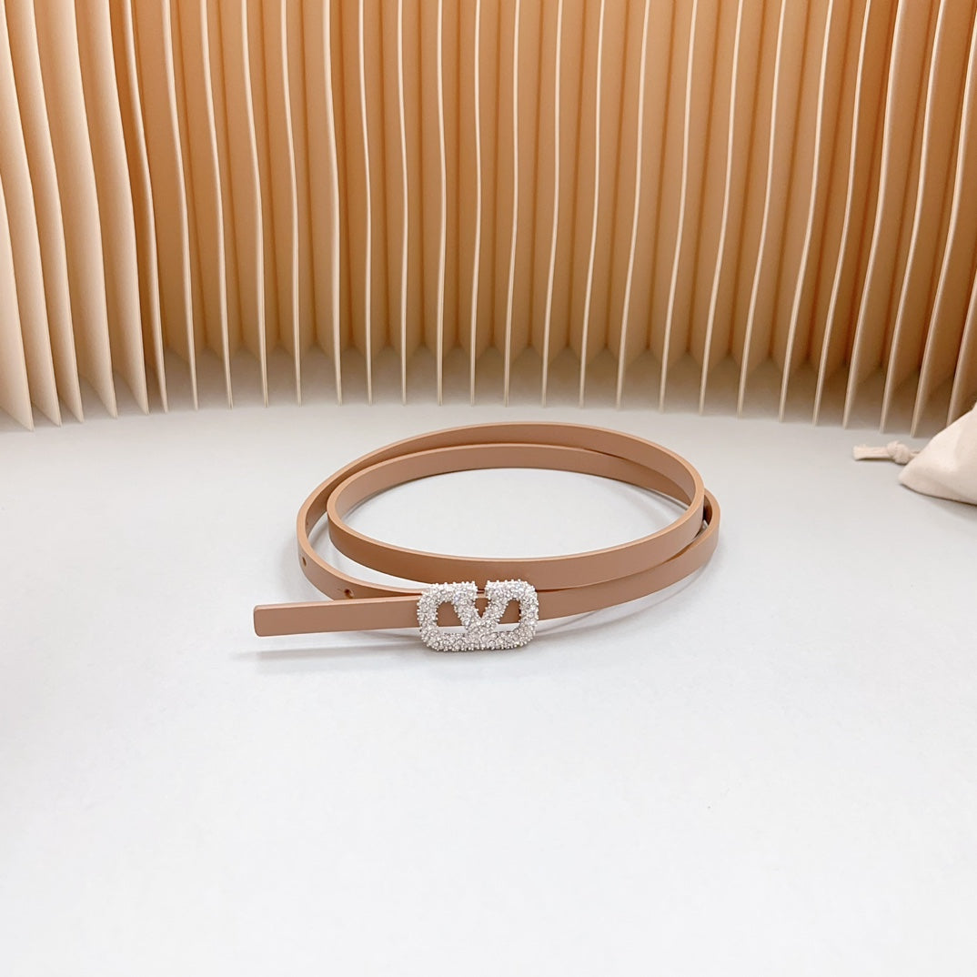 VL Belt 8mm Buckle Silver Diamond Leather Beige