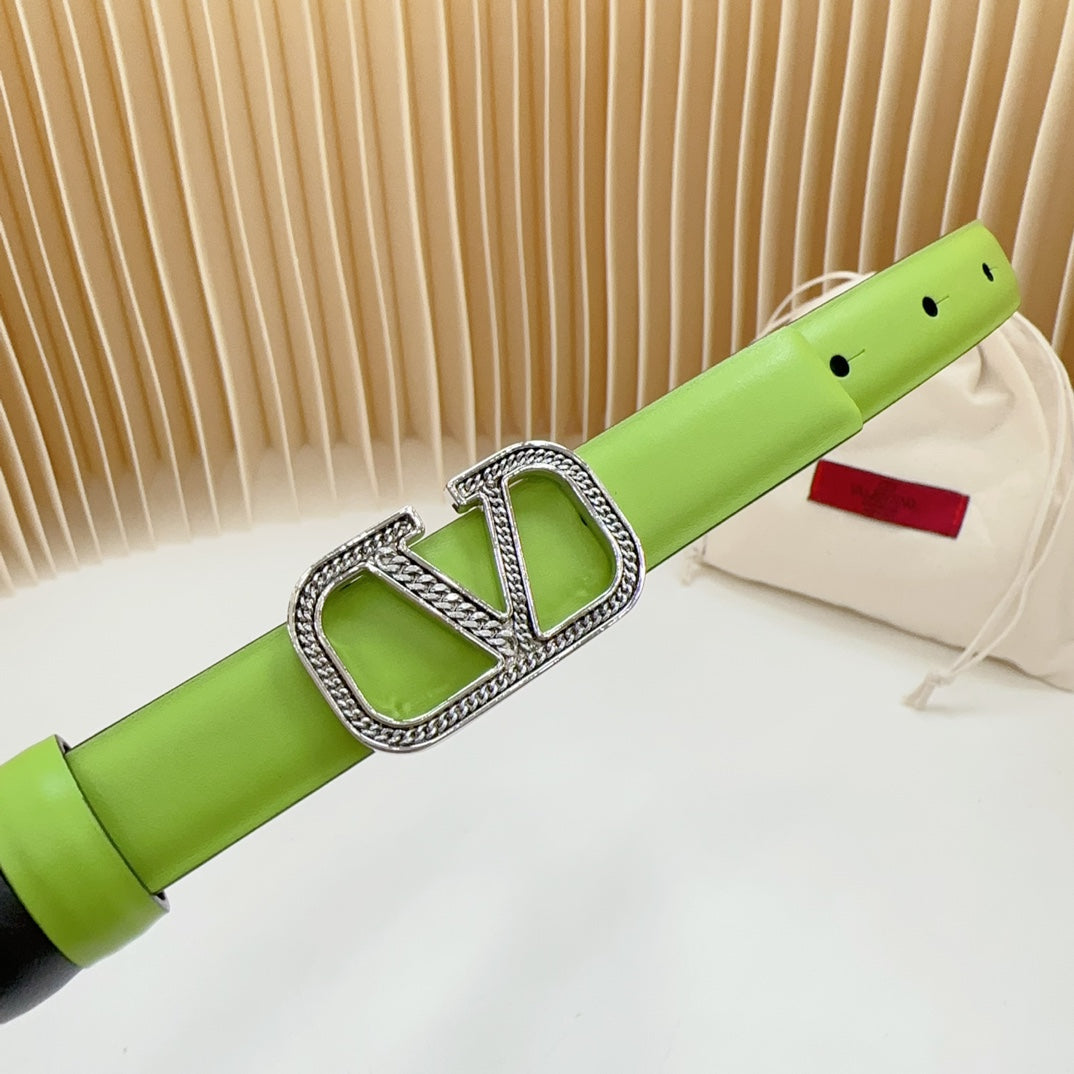 Vlogo Buckle Water Wave Silver Copper Glossy Green Black Leather 20mm Belt