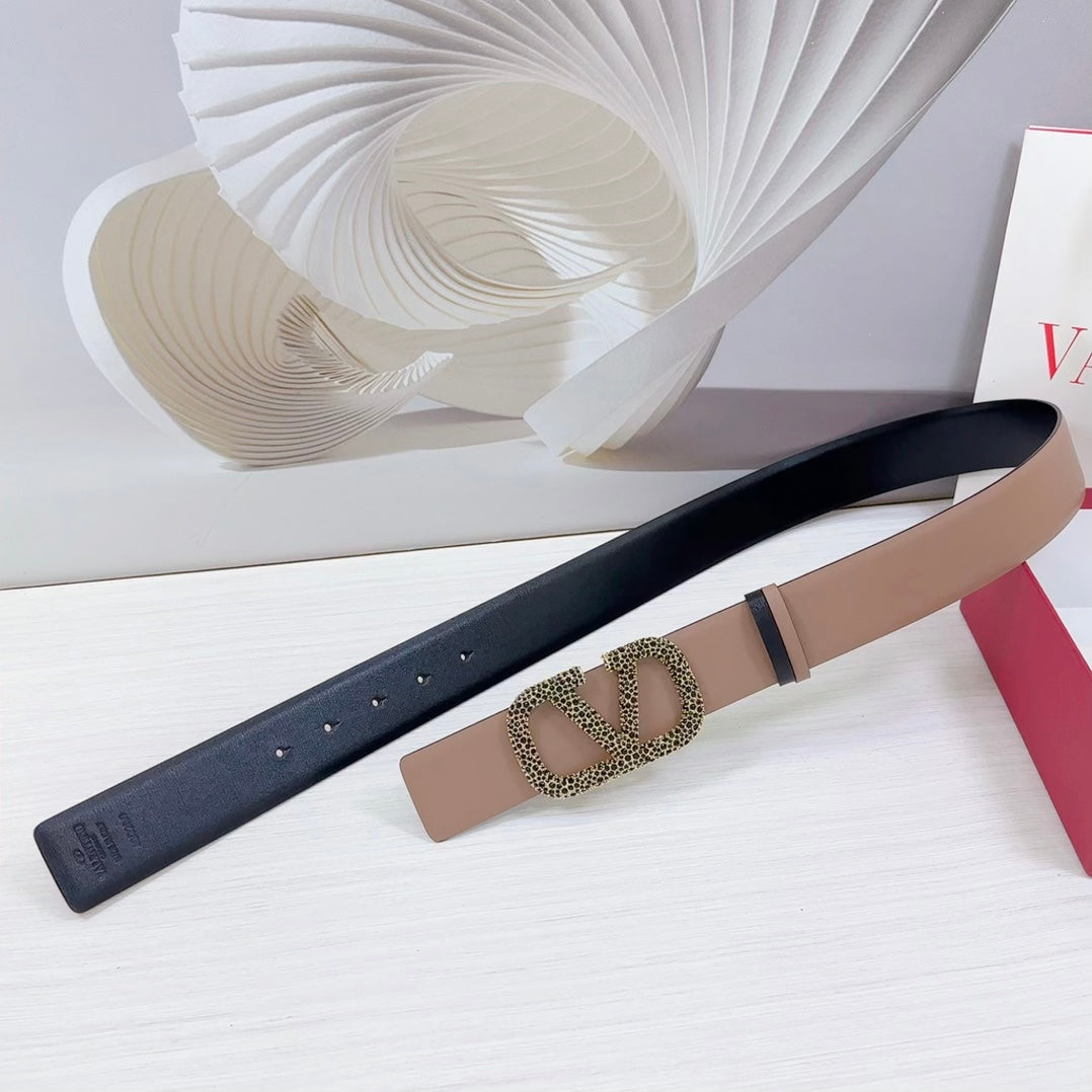 VLOGO SIGNATURE REVERSIBLE BELT 40MM ROSE BLACK GOLD CALFSKIN GOLD BLACK BUCKLE