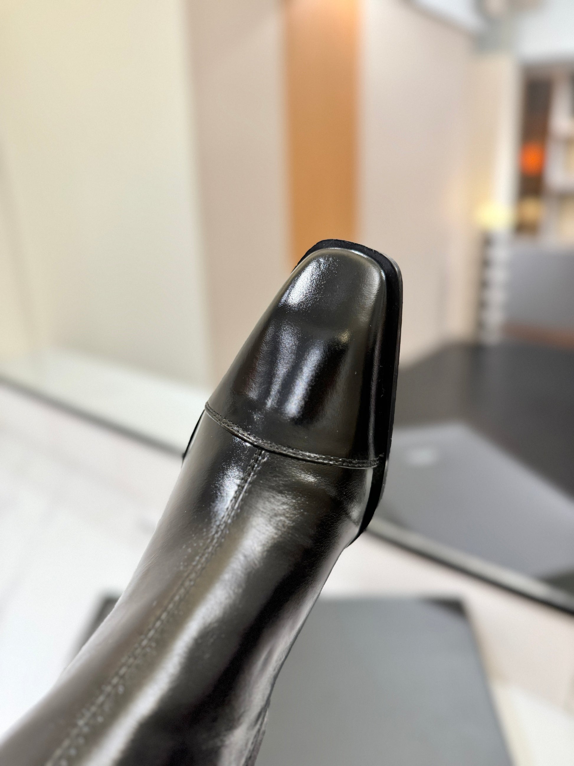 YSL 25 Zipper Sleeve Boot Black Patent Cowhide 520791