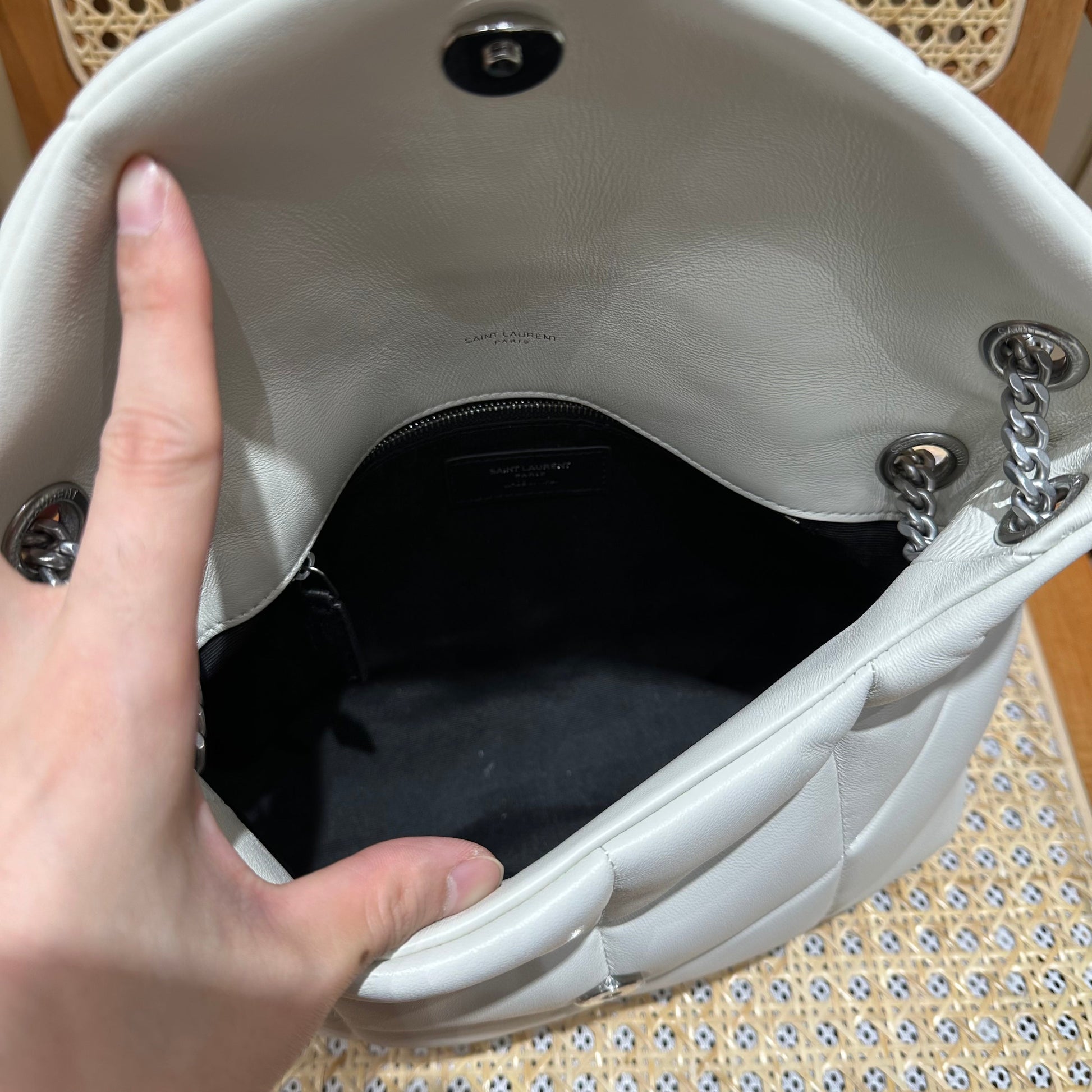YSL Loulou Puffer Quilted Bag White Silver Lambskin 338859