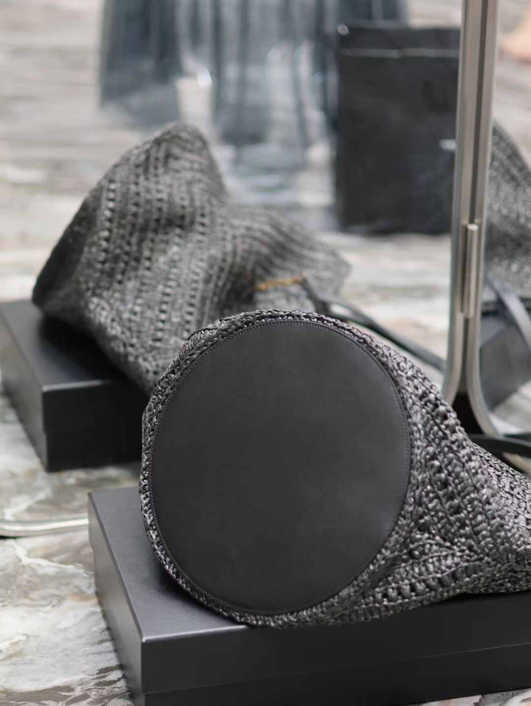 YSL MEDIUM 44CM PANIER BLACK RAFFIA TOTE BAG